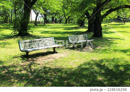 【青森県青森市】野木和公園の木とベンチ