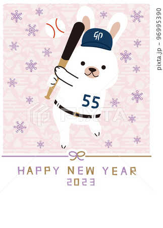 2023年賀状 村神様うさぎ ピンク