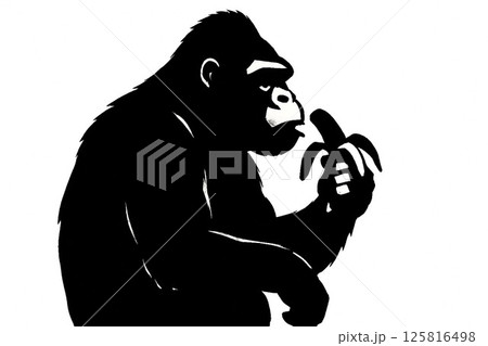 バナナを食べるゴリラのシルエット