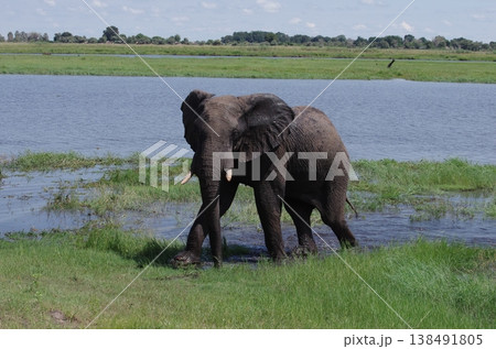 チョベ川の水辺で遊ぶゾウ ボツワナ・チョベ国立公園