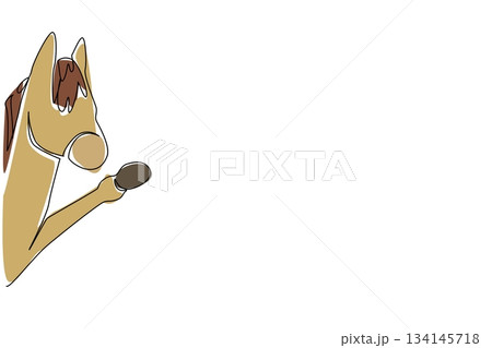 Horse depicted in continuous line drawing style, raising its leg as if waving from behind a wall. This nature concept illustration celebrates World Animal Day as an international event theme.