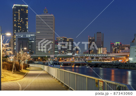 中央卸売市場周辺から見た美しい大阪・中之島周辺の夜景