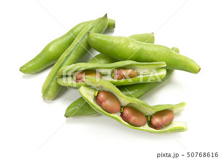 鞘を開いた状態のそら豆 白背景