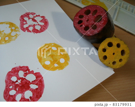 輪切り野菜のスタンプ(れんこん・オクラ・ピーマン)