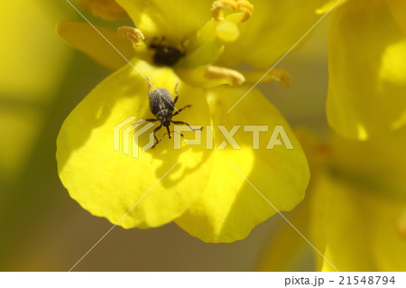 生き物 昆虫 ダイコンサルゾウムシ、小さくて地味な色合いですが花の上にいるとかなり目立ちます