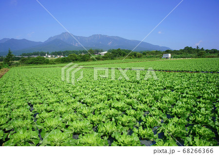 白菜畑と八ヶ岳が夏空に映える野辺山高原の風景