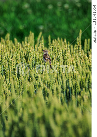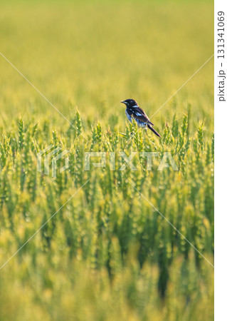 夏の小麦畑とノビタキ
