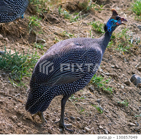 ホロホロチョウの鮮やかな横顔