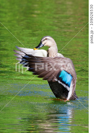 池を泳ぐマガモ