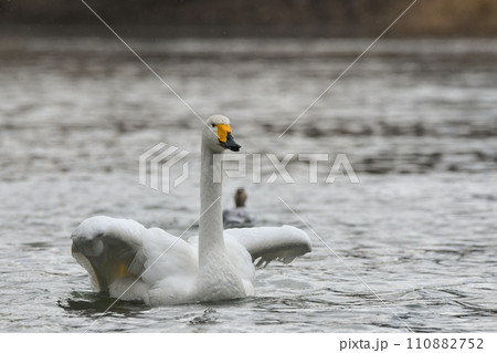 白鳥がいる池の風景 鳥取県 鹿野町