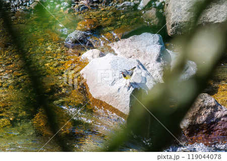 小川で餌を探す綺麗なキセキレイ(セキレイ科) 神奈川県相模原市、早戸川林道にて 2024年