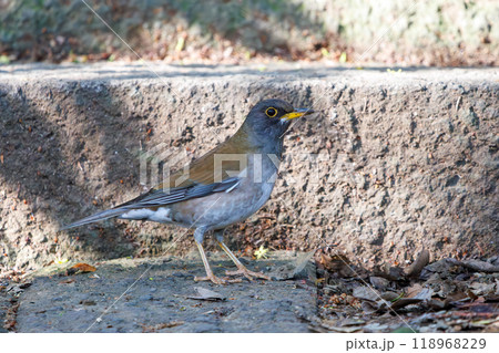 神社にお参りして身を清める可愛いシロハラ(ヒタキ科)東京都文京区-2024年