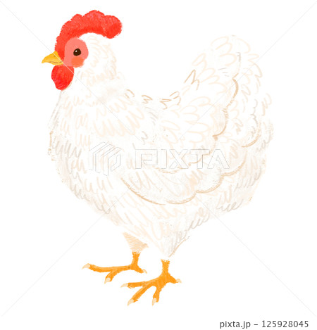 Hand drawn full body of chicken hen and rooster, domestic chicken illustration