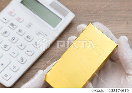 金のインゴットと電卓