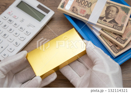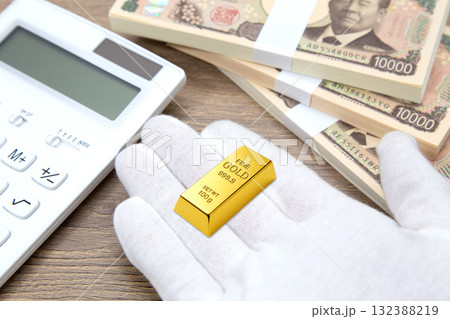 金のインゴットと札束と電卓