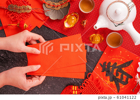 農曆新年 過年 春節 紅包 頂視圖 Chinese new year red envelope