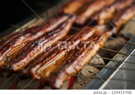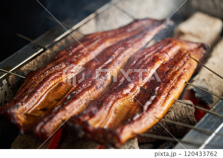 炭火で鰻の蒲焼を焼く 中国産 ロストラータ種