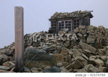 北アルプス 薬師岳 山頂 薬師如来を祀った祠
