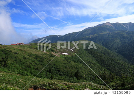北アルプス 太郎平と薬師岳 太郎平小屋のある風景
