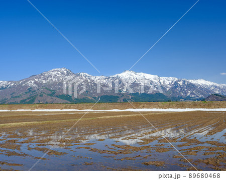 新潟_水田より上信越高原国立公園を望む