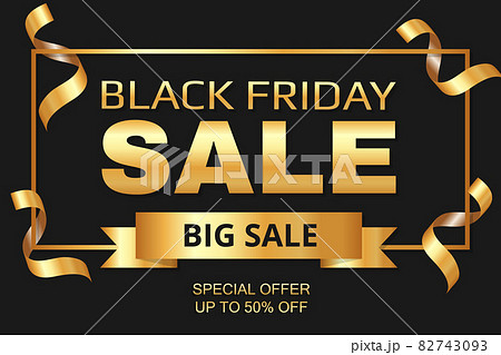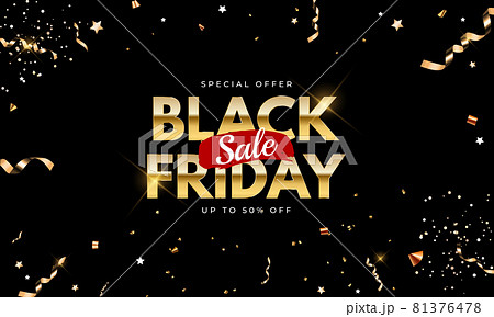 Black friday, festive sale banner template. Black friday dark and gold luxury background with confetti.
