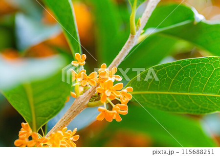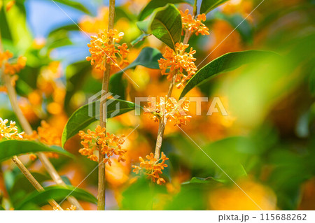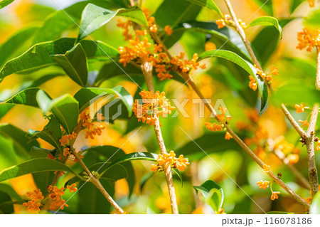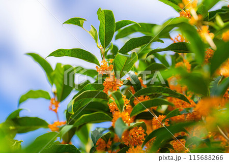 秋の景色 オレンジ色に色づいた芳醇な香りのキンモクセイ