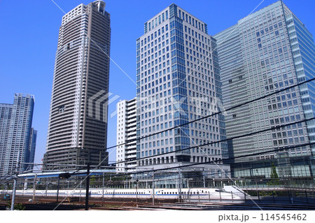 汐留シオサイト・浜松町駅付近を通過する新幹線