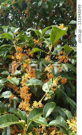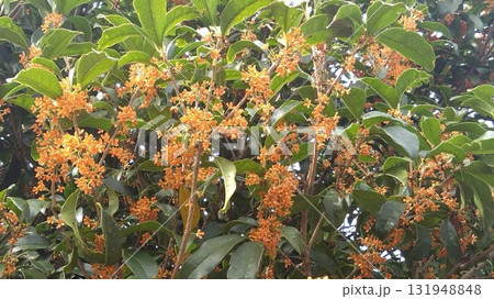 庭木の甘い香りのするキンモクセイの群生