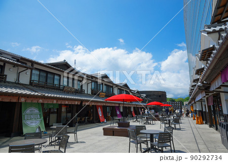 ミナカ小田原 壁面に映える小田原城 金次郎広場