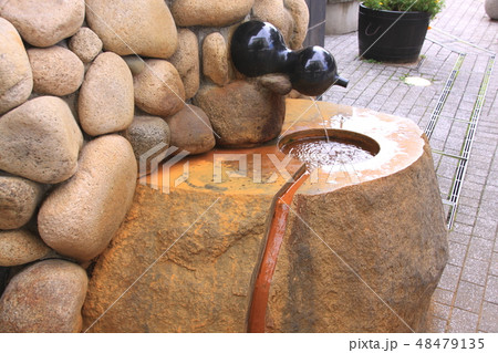 有馬温泉のレトロな町並み 湯けむり広場の噴水と河童像