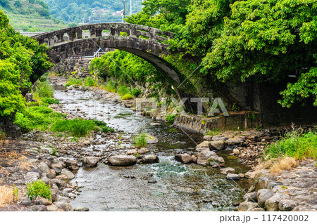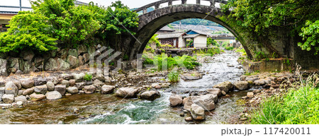 新緑の金浜眼鏡橋 パノラマ 【長崎県雲仙市小浜町】