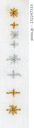 金と銀とビーズのキラキラ星の刺繍