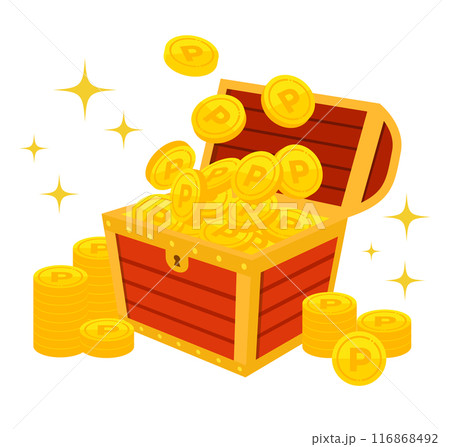 コインのいっぱい入った赤い宝箱のベクターイラスト