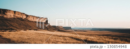 Dramatic Desert Canyon Landscape Golden Grass Cliffs Sunrise sky day dry view arid wild west wide