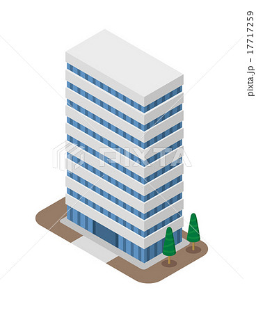 アイソメトリックな行政と公共関連施設の建物の街並みをイメージした素材