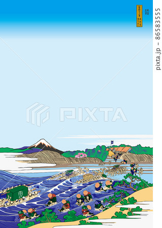 葛飾北斎イメージ東海道金谷ノ不二題名入り明るいバージョン縦白バック