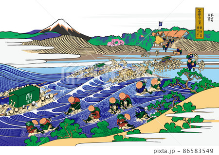 葛飾北斎イメージ東海道金谷ノ不二題名入り明るいバージョン縦