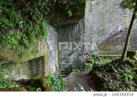 [千葉・鋸山] 鋸山の石切り場跡の断面に彫られた百尺観音菩薩の磨崖仏。