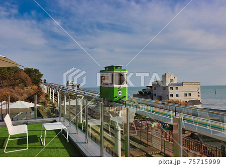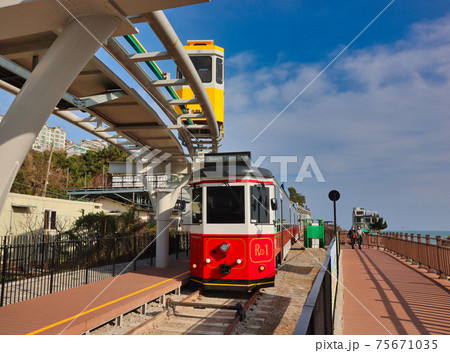 韓国 釜山 海雲台ブルーラインパーク 海辺電車の走る風景
