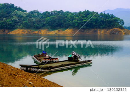 Serene Lake with Raft in Shiding District, New Taipei City Taiwan.
