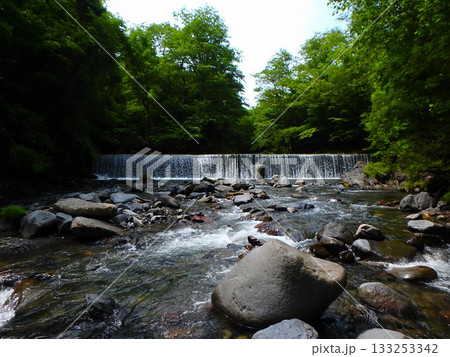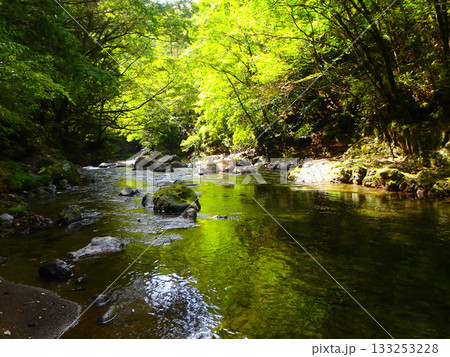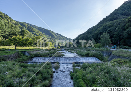 檜枝岐村の山あいを抜ける伊南川の清々しい流れ