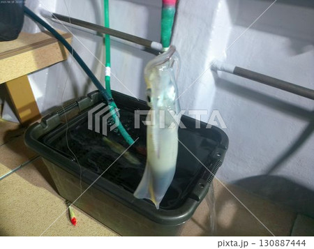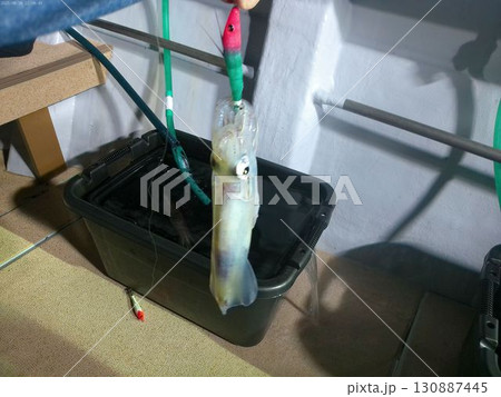 夜釣りで釣り上げた新鮮なイカ・8月