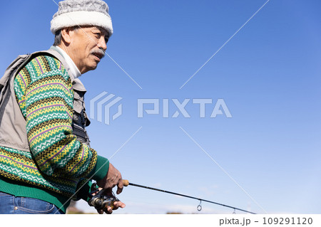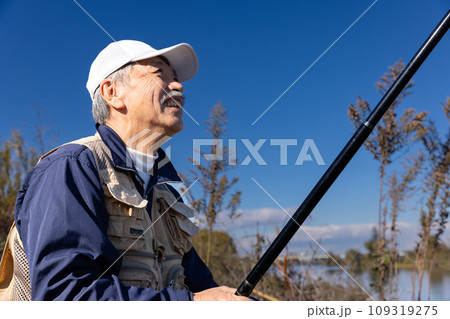 趣味の釣りを楽しむシニア男性