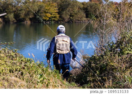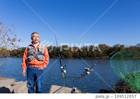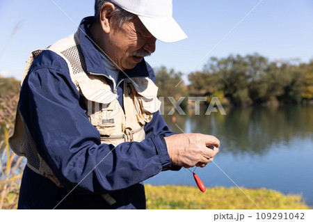 趣味の釣りを楽しむシニア男性
