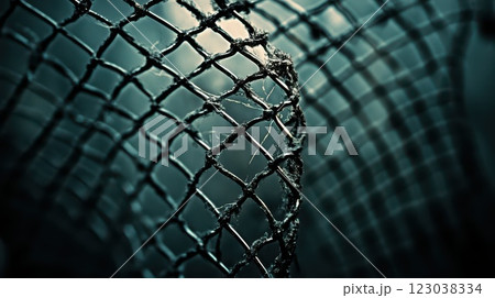 Close up view of intricate fishing net texture