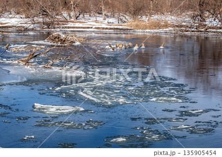 SL冬の湿原号、アレキナイ川を渡る