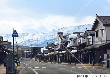 三国街道塩沢宿の牧之通りと雁木のある風景