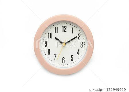 Pink clock isolated over white background close-up with clipping path