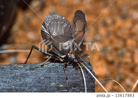 スズムシのオスが囀る 茶色背景写真