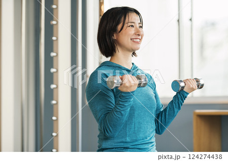 フィットネスジム スポーツジム 女性 鉄アレイ ウエイトトレーニング